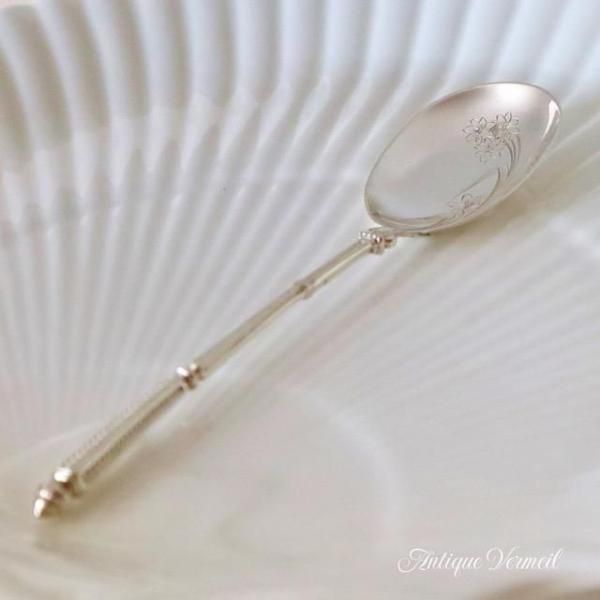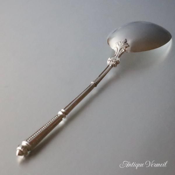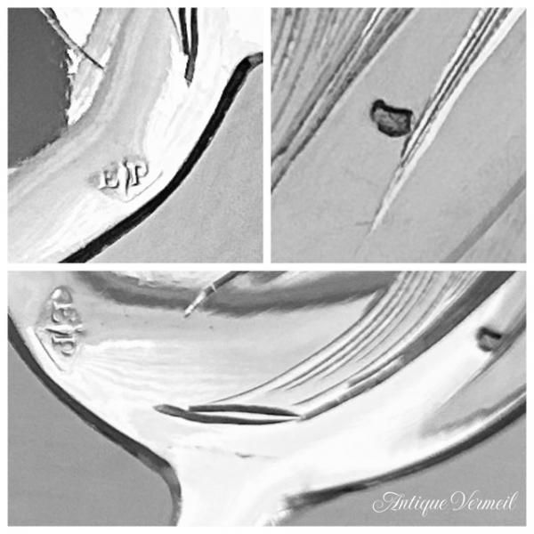 スプーンには「猪の頭」の小さな刻印が打たれています。「猪の頭」は小箱やジュエリー等の小物に押印されるのが通常ですが、ナポレオン3世時代のスプーンは小物として「猪の頭」が押印されたものが多数あります。「猪の頭」は純度800/1000以上を保証します。